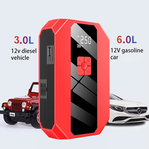 2025 Draagbare Auto Jump Starter Met Led-Luchtcompressor Noodhulpset Voor Vrachtwagens En Motorfietsen
